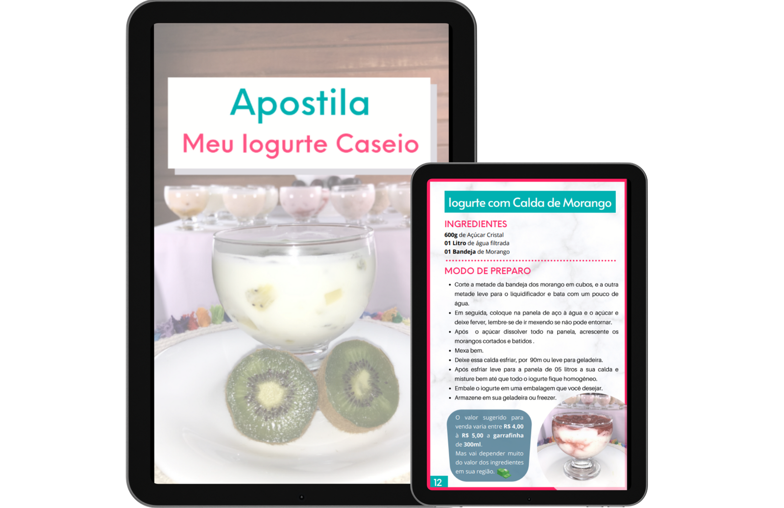 Apostila com mais de 20 receitas de Iogurte Caseiro para você ter muito mais variações no seu portifólio de produtos!