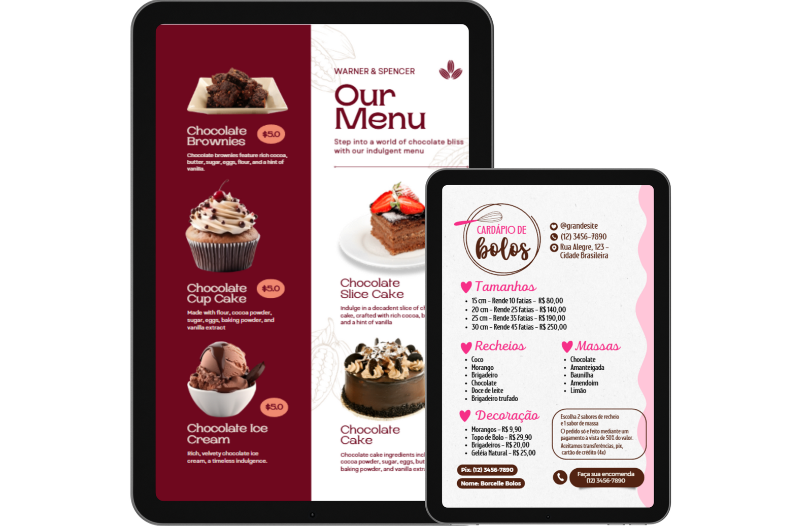 20 modelos de cardápios prontos e editáveis para o seus produtos!
